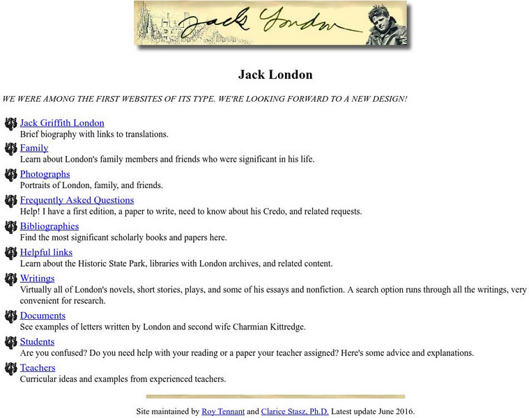 Superb site from Berkeley Education for finding any work by Jack London. Included are plays, short stories, fiction, non-fiction, and essays.