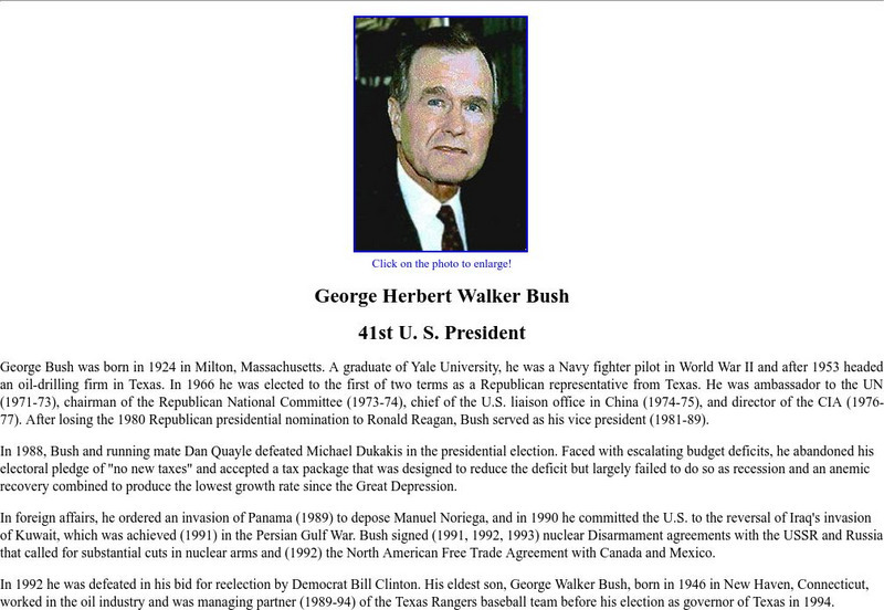 Site includes biographical information on George Herbert Walker Bush.