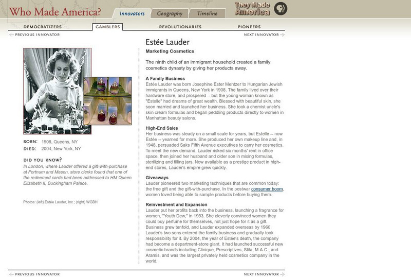 Pbs: Who Made America?: Innovators: Estee Lauder