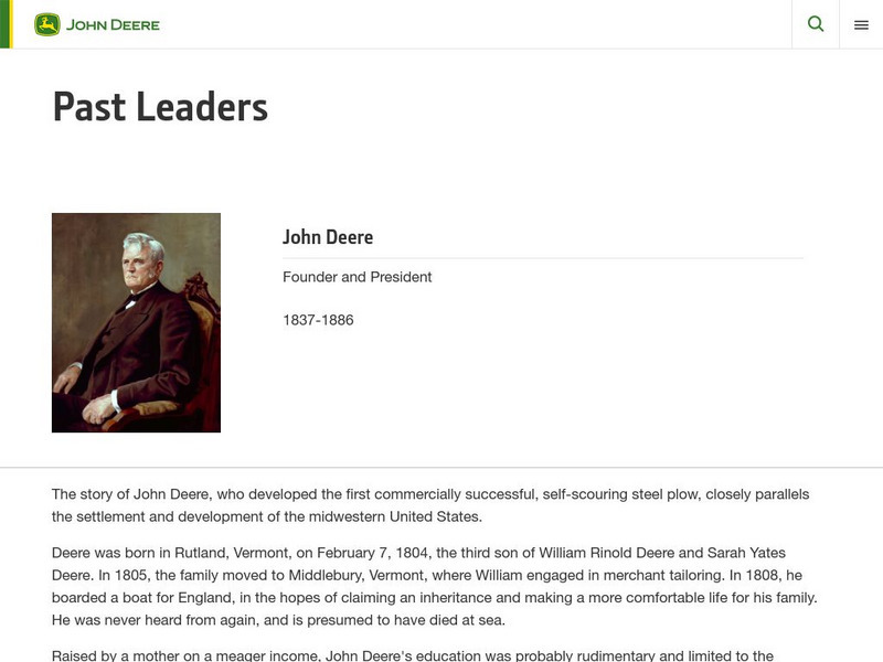 Learn about the childhood and professional successes of John Deere, who was the founder and president of the John Deere company.
