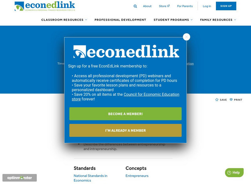 Students will list characteristics associated with an entrepreneur, which will be used to create a definition of an entrepreneur. Using their definition students should be able to identify an entrepreneur and explain why the entrepreneur...