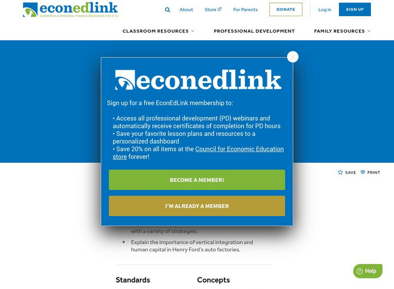 Henry Ford's use of mass production strategies to manufacture the Model T revolutionized industrial manufacturing. This 3-part learning unit provides students with the story of Henry Ford and the Model T from an economics perspective....