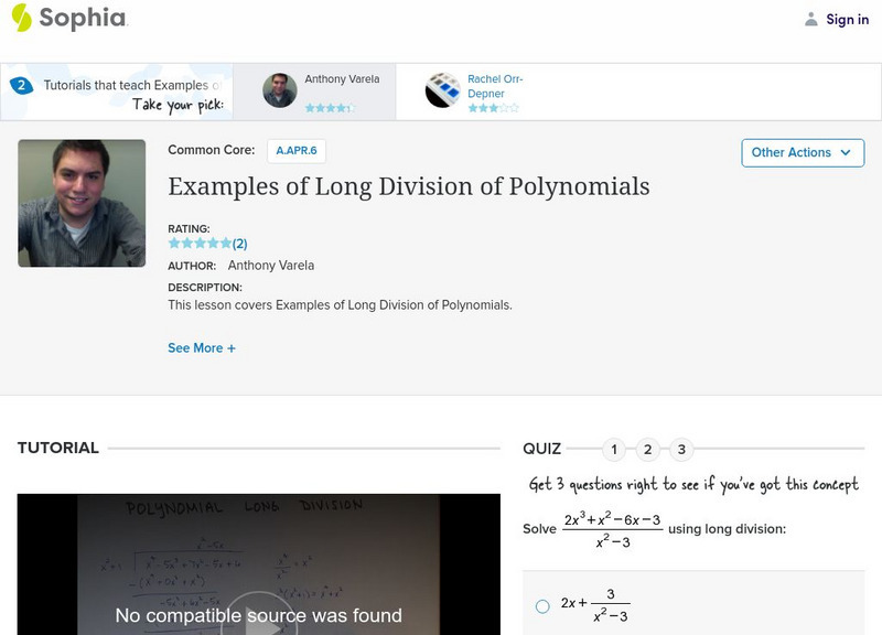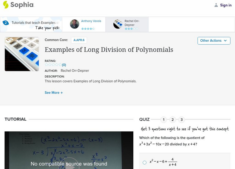 Sophia: Examples of Long Division of Polynomials: Lesson 1