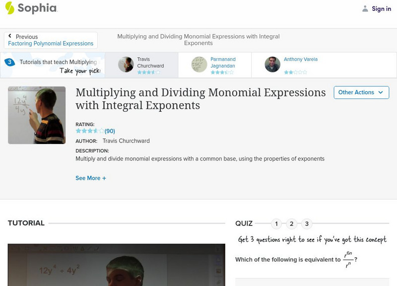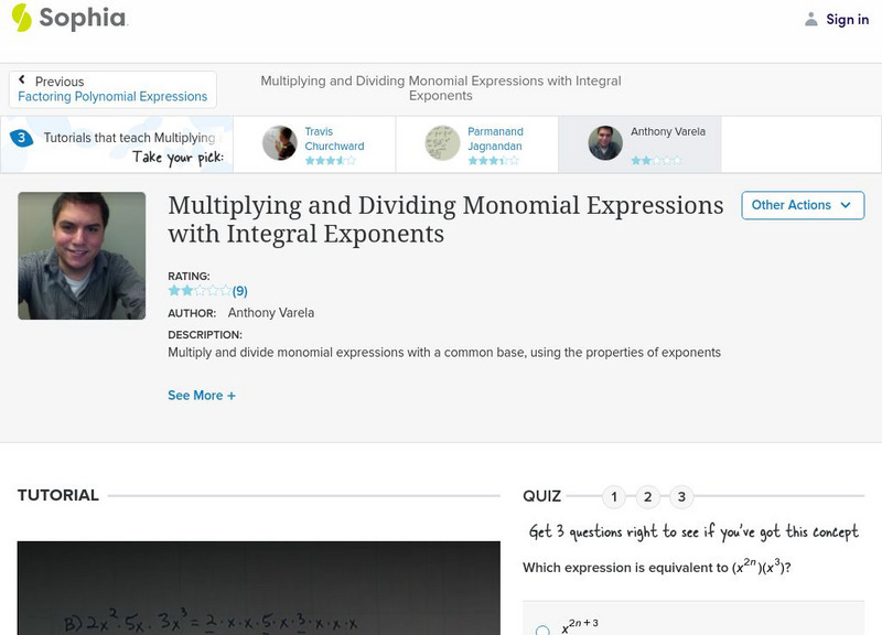 Sophia: Multiplying and Dividing Monomial Expressions With Integral Exponents
