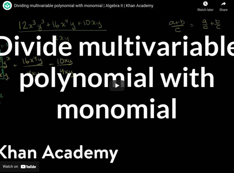 Khan Academy: Algebra: Dividing Multivariable Polynomial With Monomial