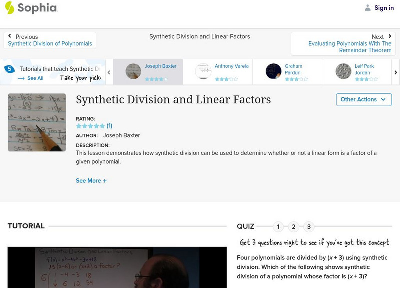 Use synthetic division to determine if a linear form is a factor of a given polynomial. Check understanding with a quiz. [3:22]