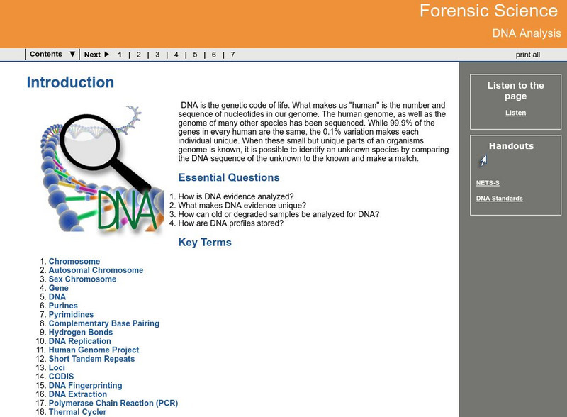 How is DNA evidence analyzed? What makes DNA evidence unique? This comprehensive interactive tutorial explores how old or degraded samples can be analyzed for DNA as well as how DNA profiles are stored.