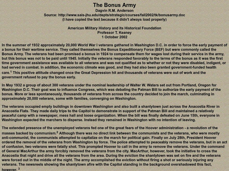 American Military History: Bonus Army