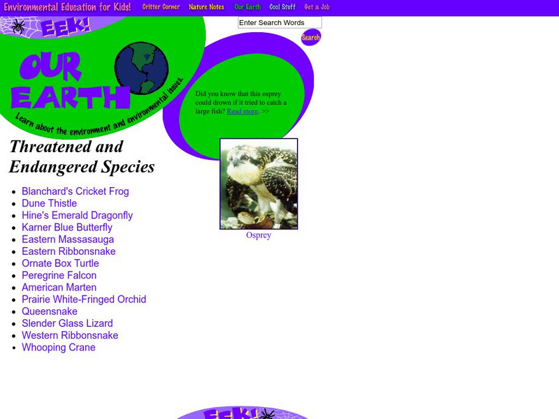 This site provides detailed descriptions and factual information on Wisconsin's Threatened and Endangered animals and plants.