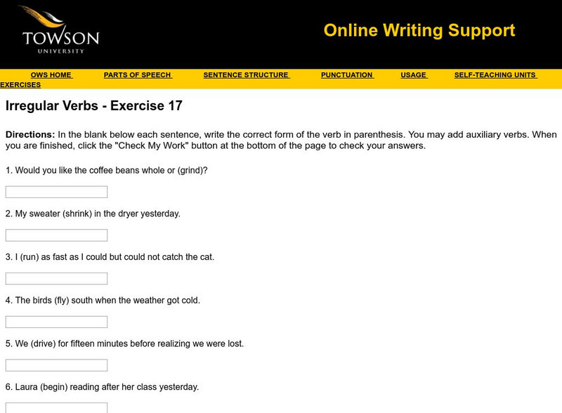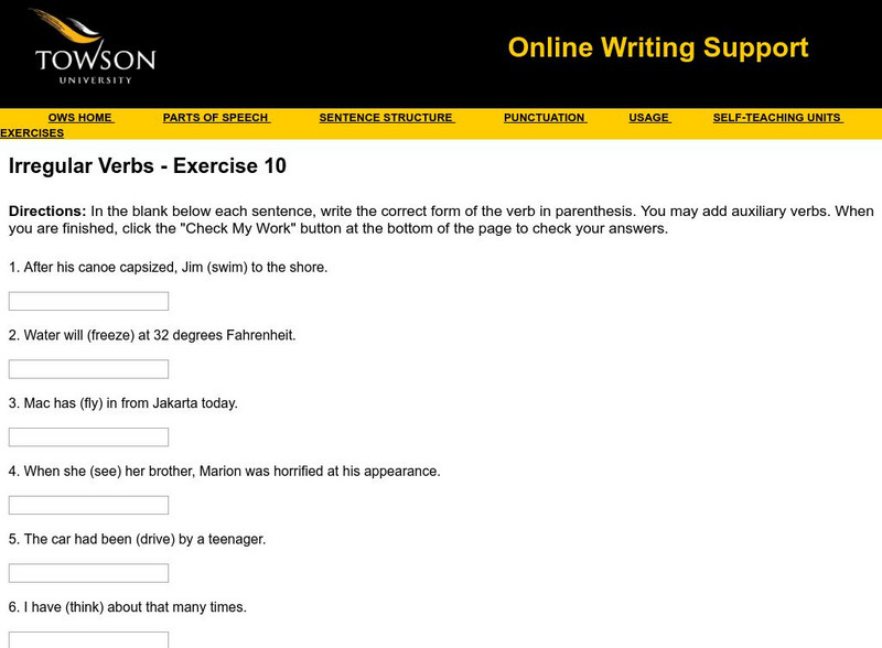 This is a 10-question, self-grading exercise/quiz on the using the correct forms of Irregular Verbs. It is suitable for ESL and regular English classes.