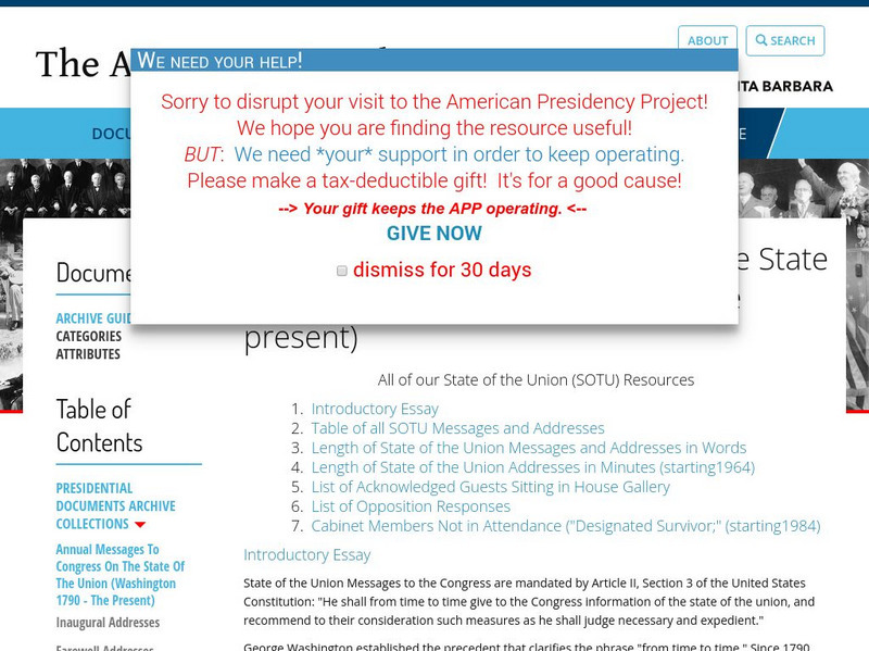 This site compiles all of the State of the Union addresses and messages by all the presidents in U.S. history (except William Henry Harrison and James A. Garfield).