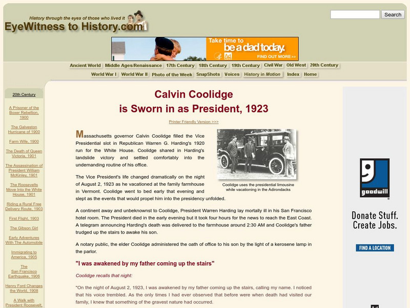 Eyewitness to History: Calvin Coolidge Is Sworn in as President, 1923