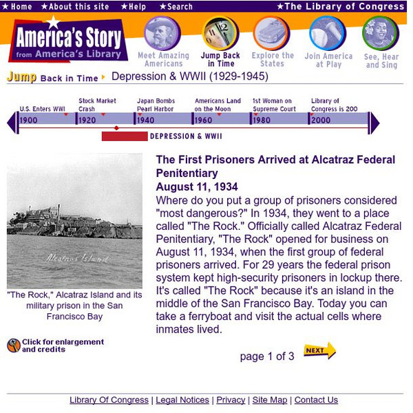 Why is Alcatraz Penitentiary called "The Rock?" Who is sent there? This Library of Congress site has more information and photographs.