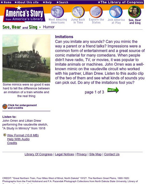 Impressions were a common form of entertainment and a great source of comic material for many comedians. Explore this short site and see if you can identify the sounds.