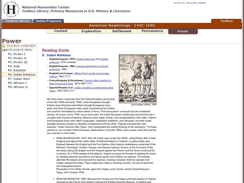 National Humanities Center: Toolbox Library: Indian Relations, American Beginnings: 1492 1690