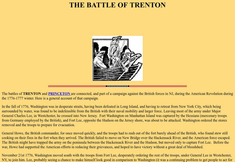 This site gives a fairly comprehensive overview of the Battle of Trenton. Author sets the scene, describes the strategy of Washington during the battle, and gives a brief aftermath.