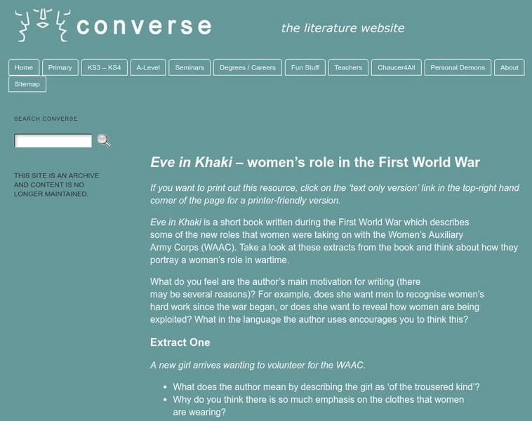 Eve in Khaki is a short book written during the First World War which describes some of the new roles that women were taking on with the Women's Auxiliary Army Corps (WAAC). Take a look at these extracts from the book and think about how...