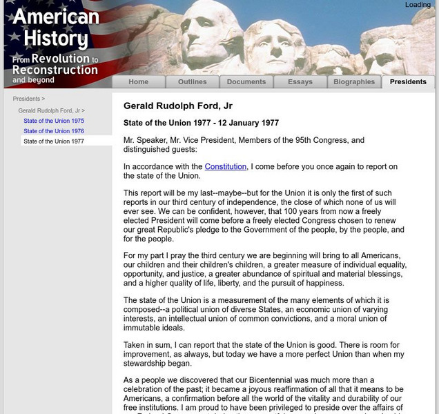 This resrouce gives the text of Gerald Ford's State of the Union Address in 1977.