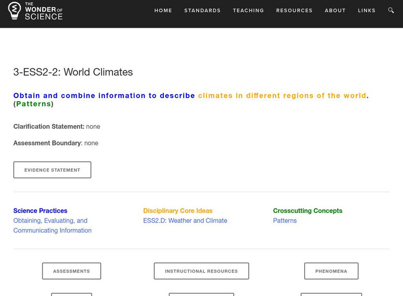 Work samples, phenomena, assessment templates, and videos that directly address standard 3-ESS2-2: world climates.
