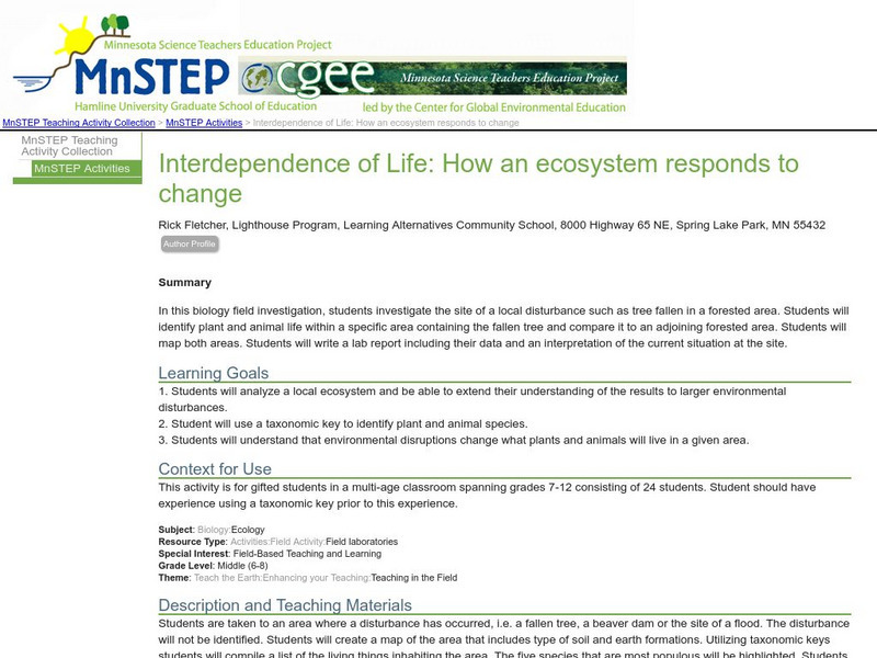 Serc: Interdependence of Life: How an Ecosystem Responds to Change