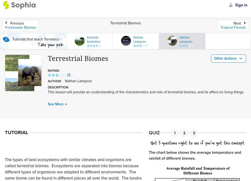 This lesson will provide an understanding of the characteristics and role of terrestrial biomes, and its effect on living things. It is 3 of 3 in the series titled "Terrestrial Biomes."