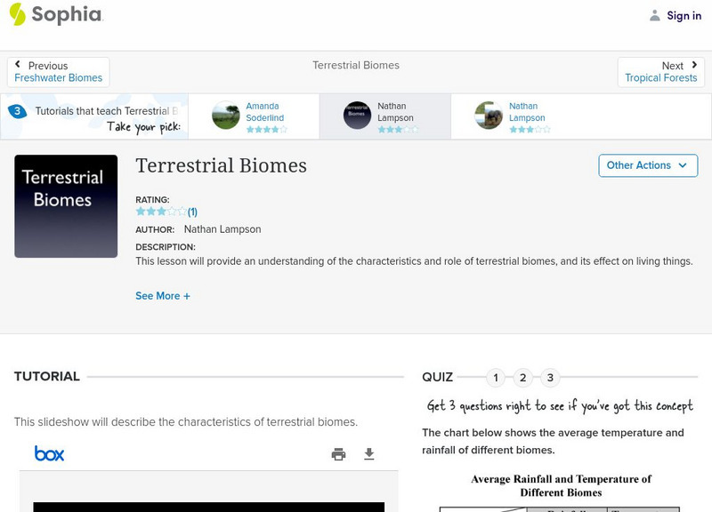 This lesson will provide an understanding of the characteristics and role of terrestrial biomes, and its effect on living things. It is 1 of 3 in the series titled "Terrestrial Biomes."