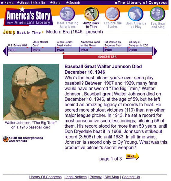Loc: America's Story: Baseball Great Walter Johnson Died