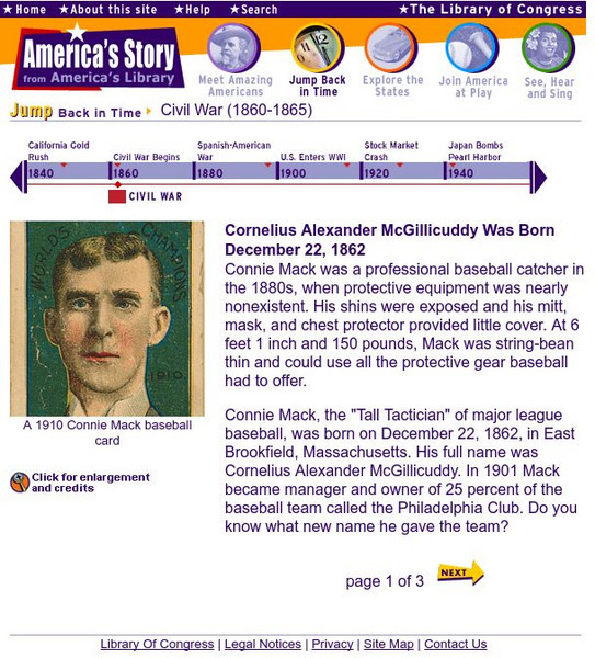 Loc: America's Story: Cornelius Alexander Mc Gillicuddy Was Born