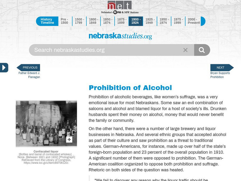 Nebraska Studies: Nebraska Prohibits Alcohol