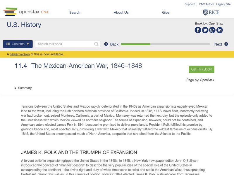 After reading this section of a chapter on "Westward Expansion," students will be able to identify the causes of the Mexican-American War and describe the outcomes of the war in 1848 and the effect of the California Gold Rush on westward...