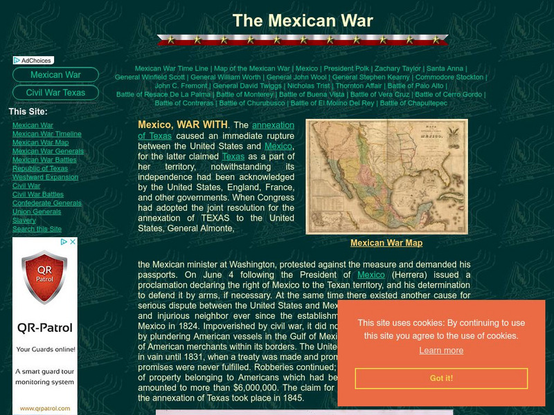 This site from the U.S. Army's Center of Military History offers a detailed account of the Mexican War and its important battles as well as a description of what occurred after the war.