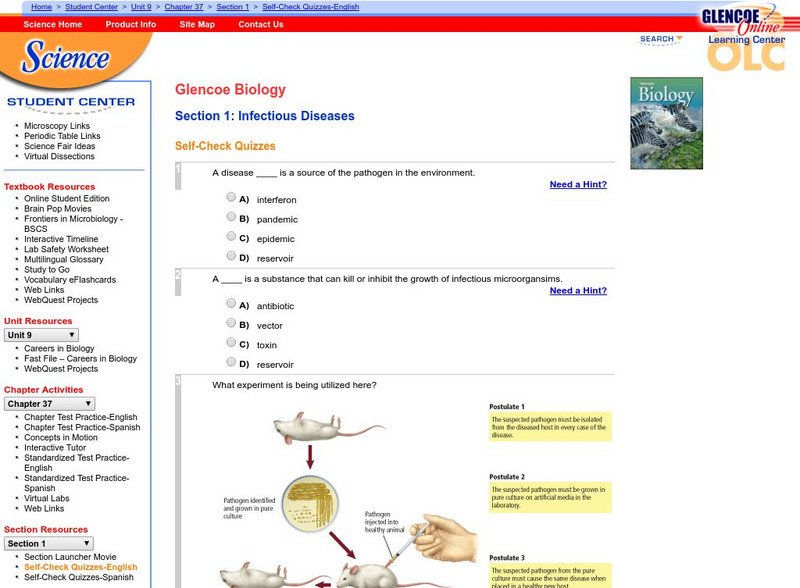 Glencoe Biology: Infectious Diseases: Self Check Quiz
