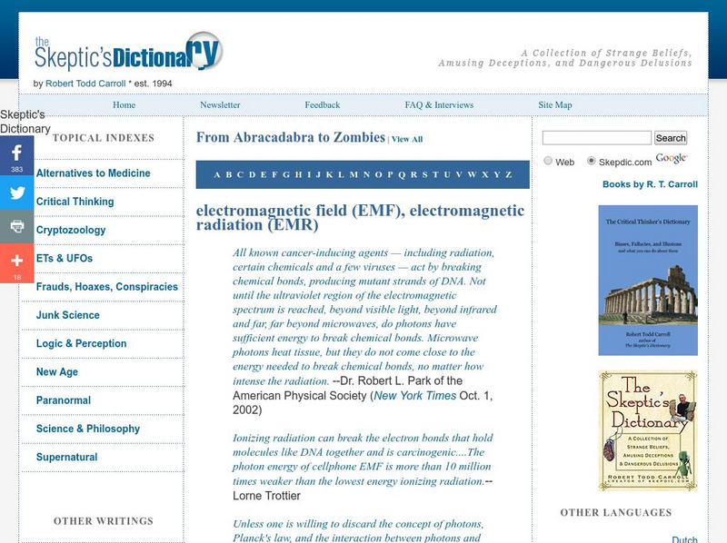 The Skeptic's Dictionary: Electromagnetic Fields (Em Fs)