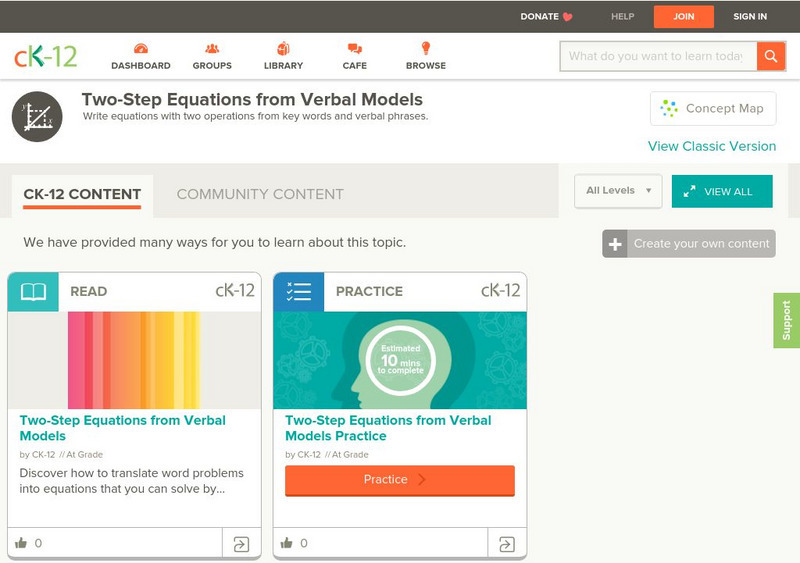 [Free Registration/Login may be required to access all resource tools.] Use verbal models to write two-step equations