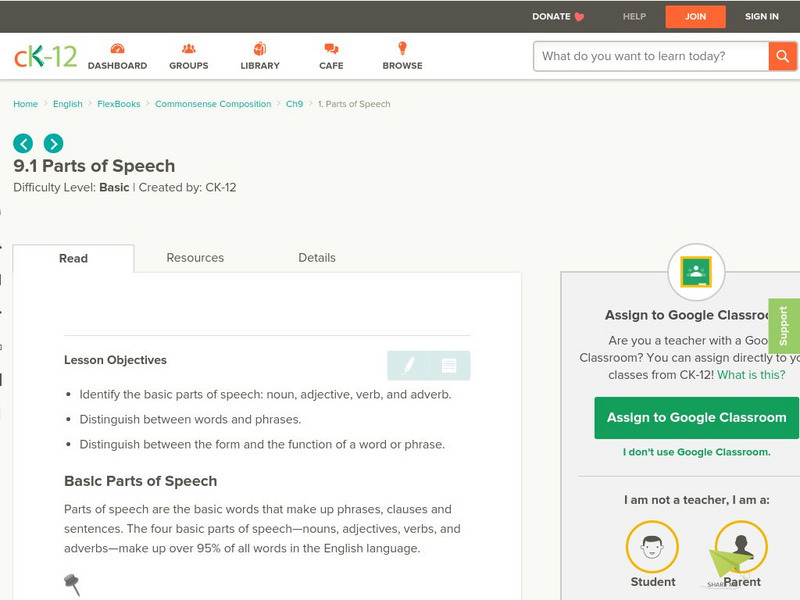 [Free Registration/Login may be required to access all resource tools.] Learn about nouns, adjectives, verbs, and adverbs through explanations and examples. Also learn to distinguish between words and phrases and between form and...