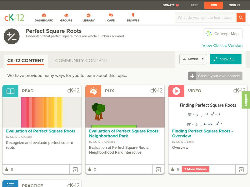[Free Registration/Login may be required to access all resource tools.] Recognize and evaluate perfect square roots