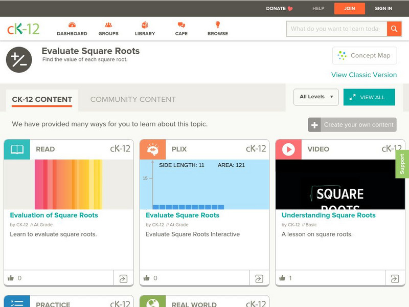 Ck 12: Algebra: Evaluation of Square Roots