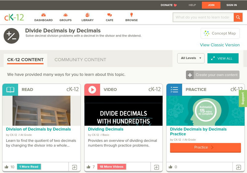 Ck 12: Arithmetic: Decimal Division