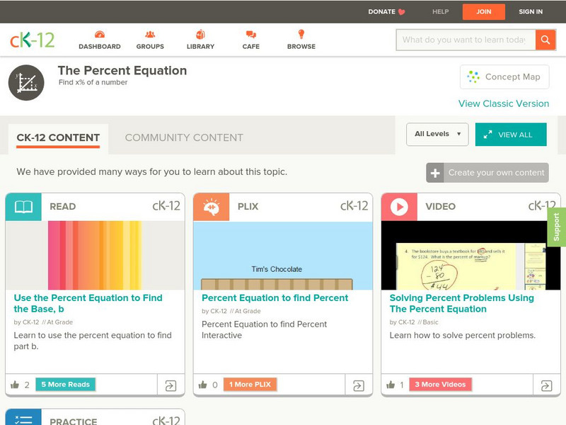 [Free Registration/Login may be required to access all resource tools.] In this lesson students use a proportion to find part a of the percent proportion. Students examine guided notes, review guided practice, watch instructional videos...