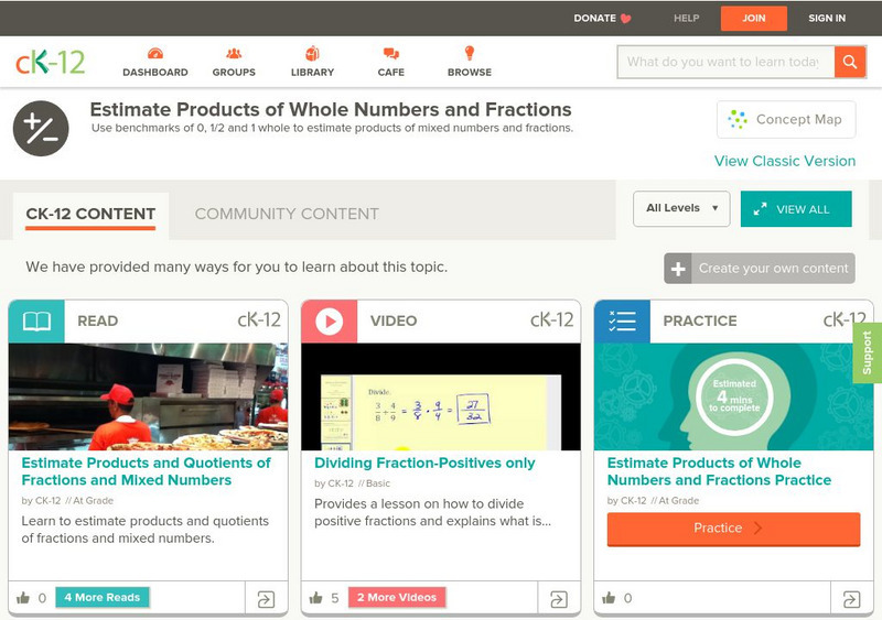 [Free Registration/Login may be required to access all resource tools.] In this lesson students estimate quotients of fractions and mixed numbers using benchmarks and rounding. Students examine guided notes, review guided practice, watch...