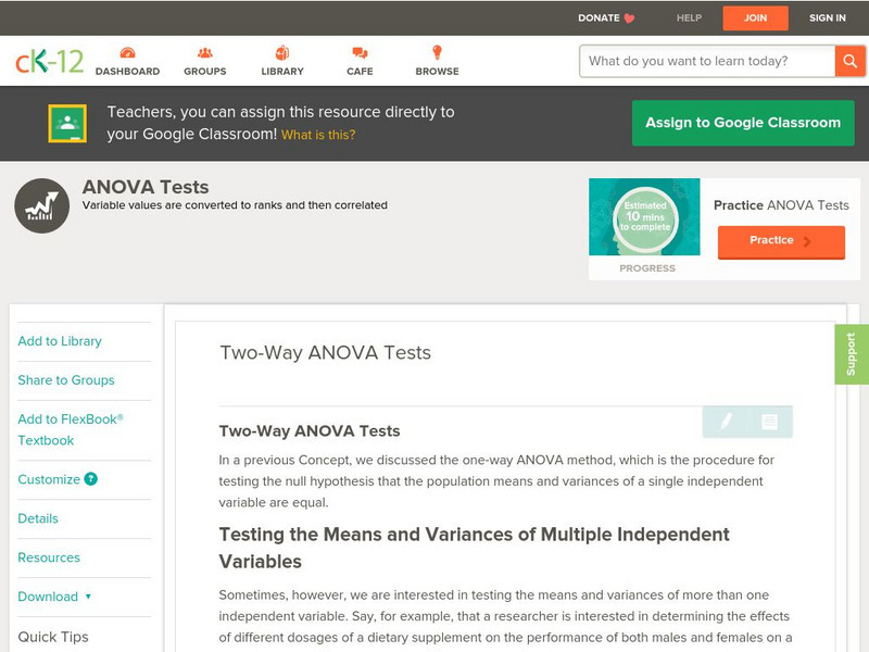 Ck 12: Statistics: Two Way Anova Tests