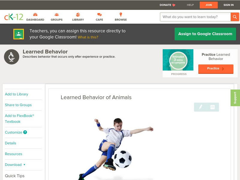 Ck 12: Life Science: Learned Behavior of Animals