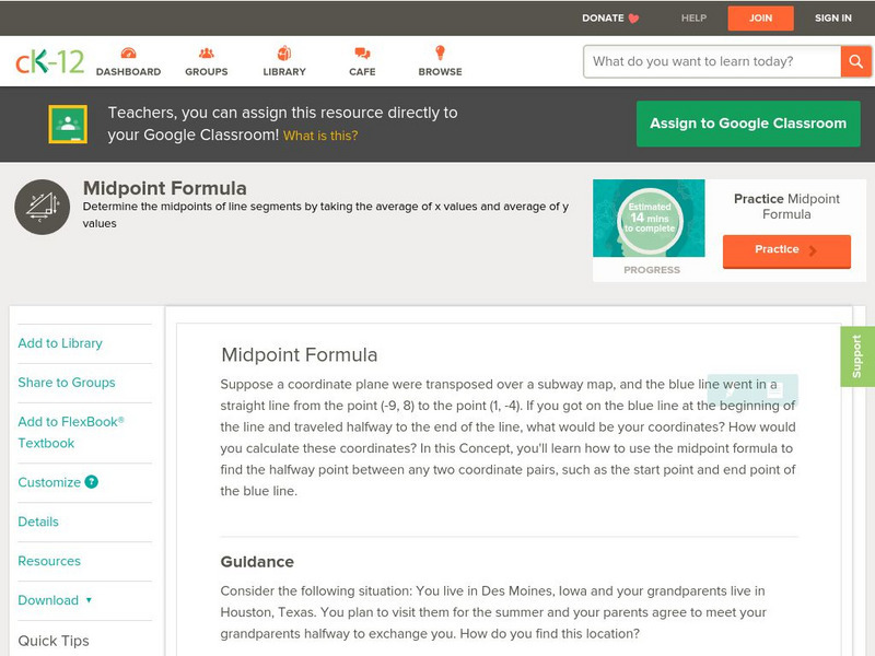 Ck 12: Algebra: Midpoint Formula