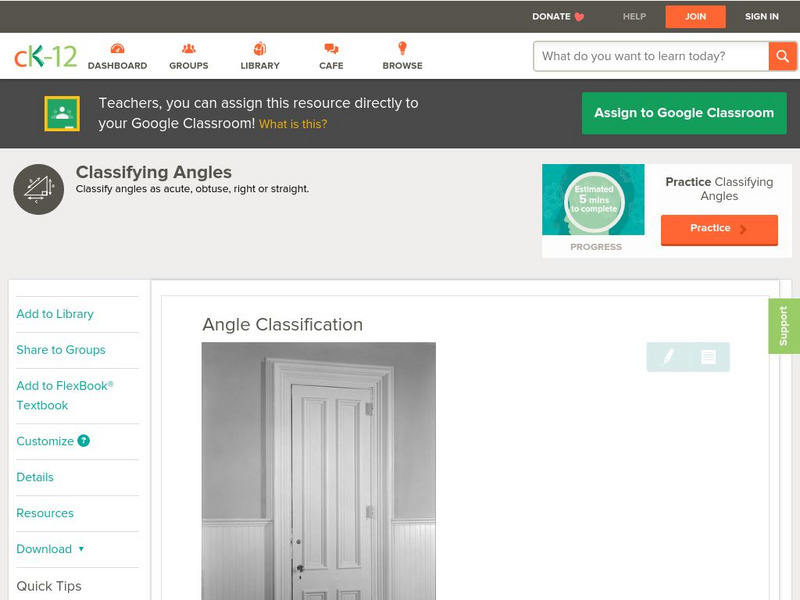 Ck 12: Geometry: Angle Classification Grade 6