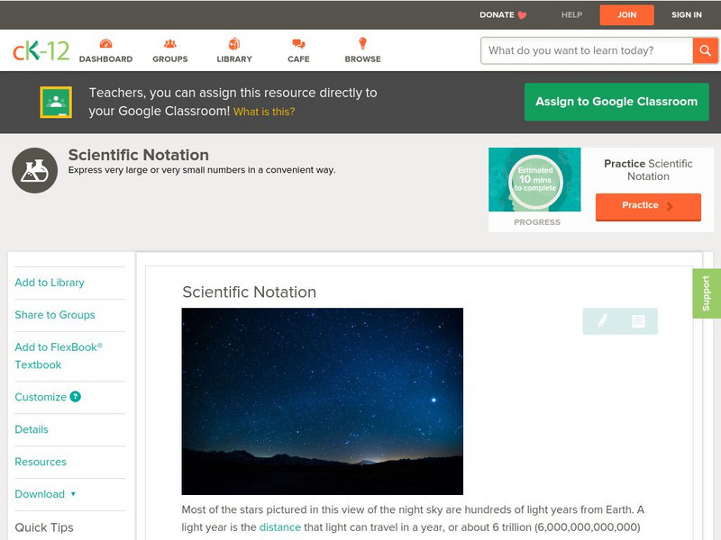 Ck 12: Algebra: Scientific Notation