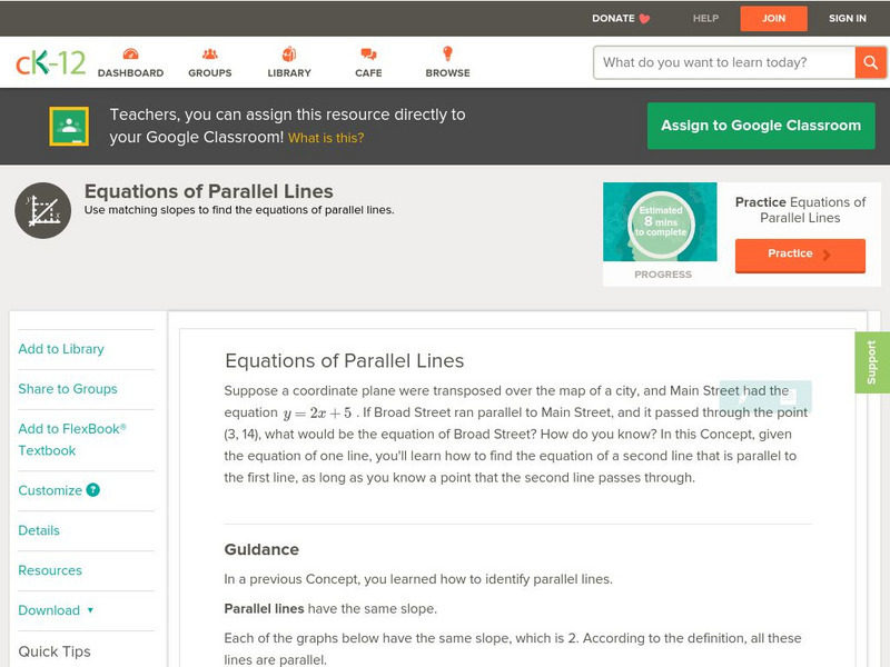 Ck 12: Algebra: Equations of Parallel Lines