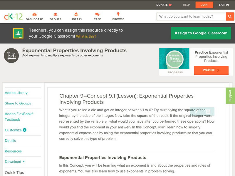 Ck 12: Algebra: Exponential Properties Involving Products