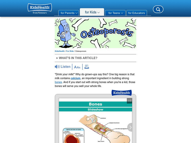 When someone's bones weaken they are said to have osteoporosis. Learn all about the different types, signs and symptoms, and how it is treated. Find out what you can do to prevent getting it as an adult.
