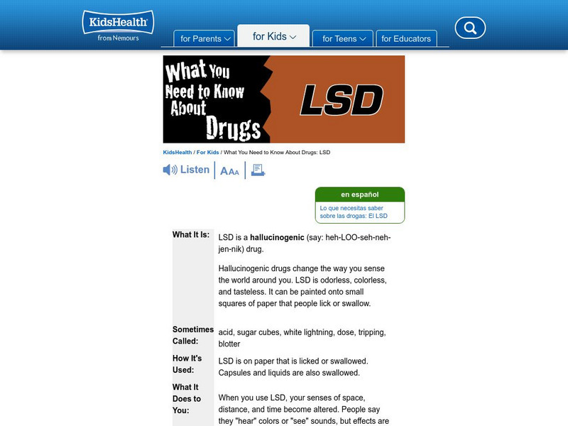 Use this chart as a quick reference for facts about LSD, its common names, and its effects on users' bodies and brains.