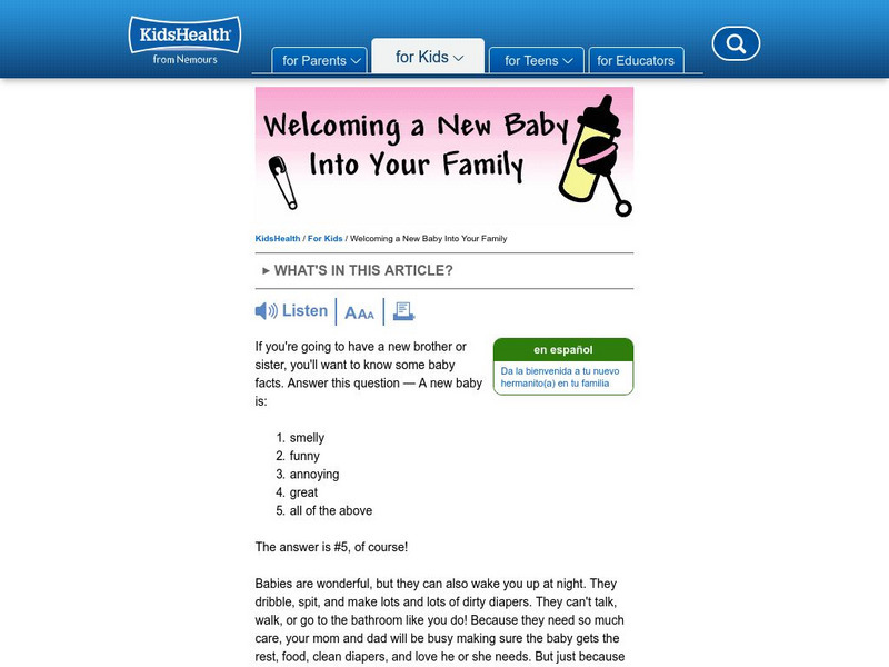 "Maybe you've always wanted a baby brother or sister and your parents just told you you're going to have one. Perhaps you've always liked being an "only" and now your parents have announced that you'll have a brother or sister soon....
